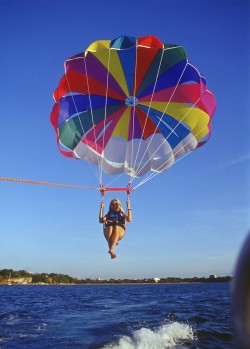 Fly aloft over Panama where the view of the Pacific Ocean is amazing. You'll be waving at the other parasailers 800 ft below you while you see everything from a view unlike any other. Parasailing is a must for any thrill seeker. Panama Parasailing is sure to leave you a memory you will never forget. For those unfamiliar with it, parasailing turns you into a human kite suspended hundreds of feet above the emerald green waters of the Gulf Stream. Each person's "flight" lasts between 10 to 12 minutes, but the experience will last a lifetime! Spectacular views and the awesome sensation of floating above the earth may inspire you to do it again. We utilize a system of Parasailing called controlled parasailing. This system utilizes a hydraulic winch and a platform (flight deck) that is built onto the back of the parasail boat. Guests are gently lifted from the flight deck on the back of the boat and land right back on board the boat. It is the safest most modern method of Parasailing available. You do not have to get wet if you do not want to, but a fun part of the ride is towards the end when the captain can slow the boat down and touch your toes in the water. There are no age requirements, but their are weight requirements. Guests need to weigh around 90 pounds to go by themselves depending on the strength of the wind. The stronger the wind the more weight that is needed in the parasail. If someone does not weigh enough to go by themselves they can usually go up with someone. |